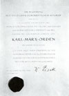 Urkunde zum Karl-Marx-Orden von Wilhelm Pieck |
