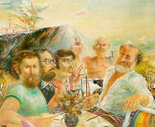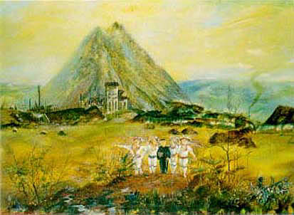 Pleinairteilnehmer Das Riesenrad Kaue Pfingstfest '79 Wilfried Falkenthal, Mansfelder Land I-IV, 1979, Mischtechnik auf Leinwand 1. 97x116 cm 2. 158x99cm 3. 97x116 cm 4. 118x90cm