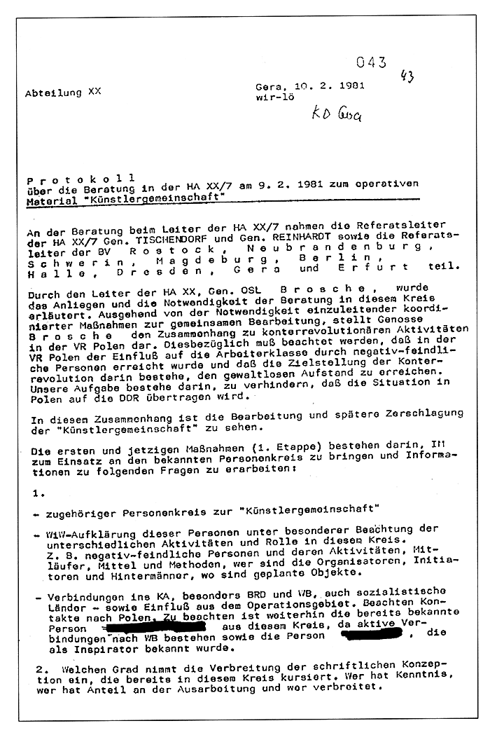 wurden Mitglieder der Künstlergruppe in fünf Operativen Vorgängen