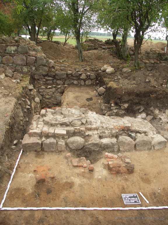 Abb. 6: Grabungsschnitt im Turm mit Blick auf die Außenwände des Kellers und die Fundamentlage,