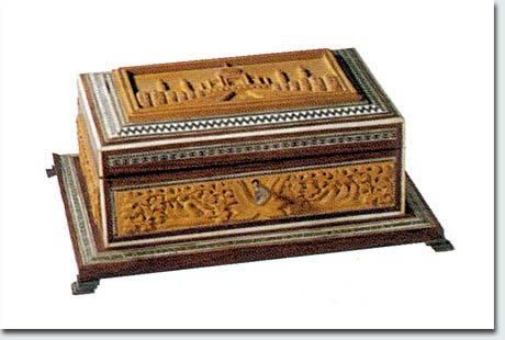 Schmuckkästchen Indien 1959 Geschenk der Delhi Printers' Association an Otto Grotewohl Holz 10,5 x 27,5 x 20 cm Inv. SI 90/342