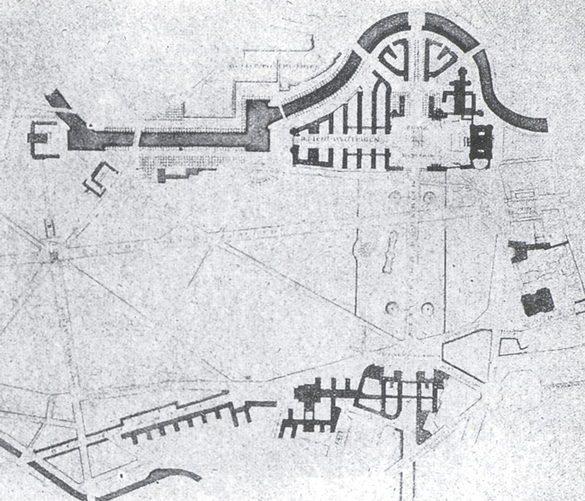 Park von Schloß Bellevue. Am unteren Bildrand der Kemperplatz