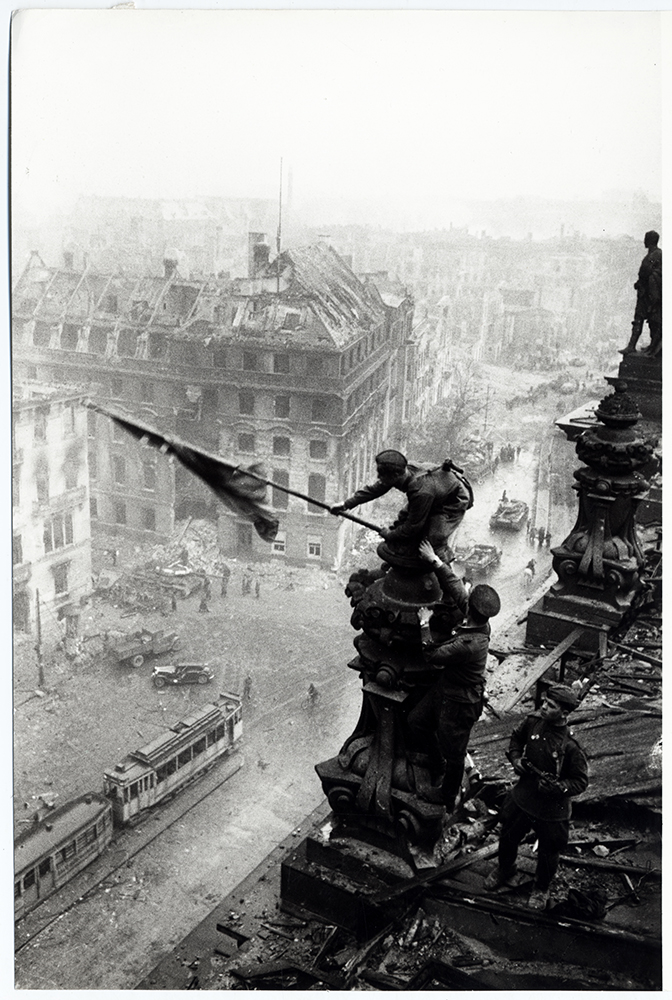 Raising the Soviet Flag on the Reichstag in Berlin in 1945, Yevgeny Khaldei © DHM