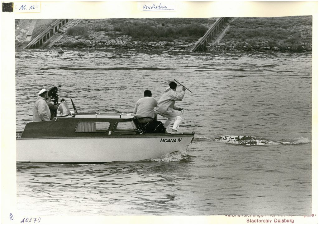 [8] WDR mediagroup GmbH (Hg.): Hier und Heute. Dr. Gewalt stellt die Waljagd im Rhein ein, 10. Juni 1966, 00:02:22–00:02:26.