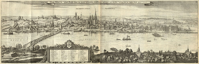 Originaltitel: ARCHIEPISCOPAILS MOGUNTIA Wahre Bildnuss der Statt Maintz, sampt den newen Schantzen, Schiffbrücken, vnd Läger, Wie dieselbe Voriger Zeit im Wesen stund. ANNO 1633.