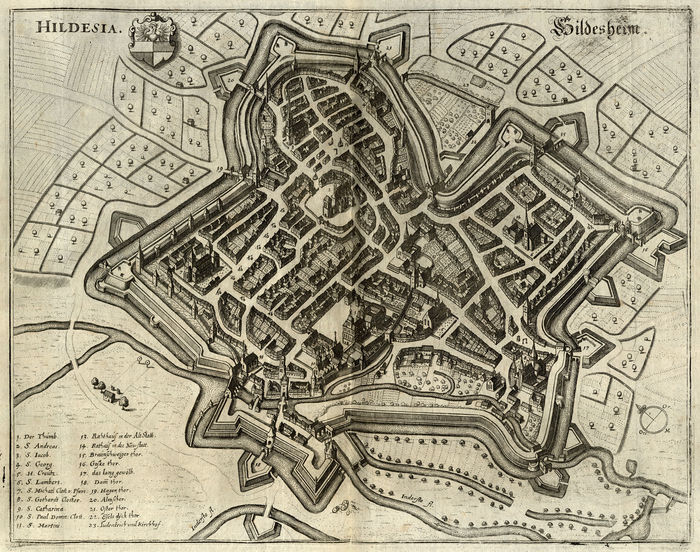Vogelschauplan, von Südwesten, nach S. 138, Stecher: Merian, Matthäus mit Nachträgen von Merian, Caspar