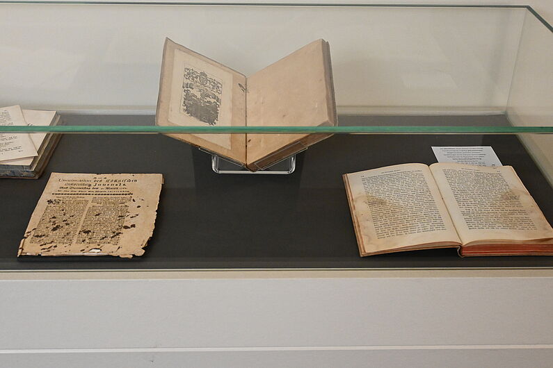 Die Bibliothek präsentiert zu den aktuellen Öffnungszeiten in regelmäßigen Abständen besondere Stücke aus ihrer Sammlung in einer Vitrinenausstellung.
