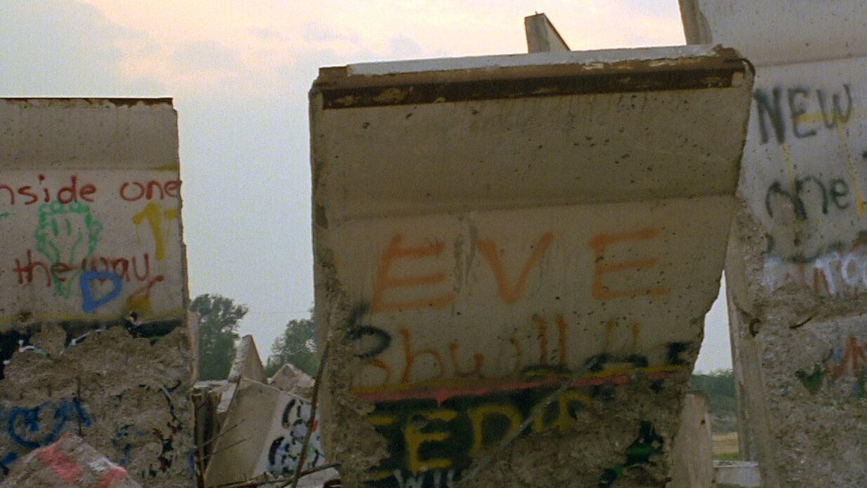 Auf einer Deponie türmen sich die abgebauten Teile der Berliner Mauer, über dem Grenzstreifen kreisen Krähen. Das Ende dieses Bauwerks markiert auch das Ende eines Staates. Das Hämmern und Klopfen der Mauerspechte klingen wie ein Abgesang, der das „Auferstanden aus Ruinen“ aus der Nationalhymne der DDR kommentiert. Das Brachland an der Mauer entwickelt sich zu einer neuen Flaniermeile. Im Untergrund inspiziert Jürgen Böttcher den verwahrlosten S-Bahnhof Potsdamer Platz. Der Todesstreifen avanciert zur Fotoattraktion, das mühselig herausgebrochene Mauerstück zum Souvenir und Handelsobjekt. Am Brandenburger Tor versammelt sich die Weltpresse. Auf einem Mauersegment flackern historische Filmaufnahmen vom Mauerbau 1963, von Fluchtversuchen und der Grenzöffnung. Stumme Bilder, vom bröckeligen Beton der Mauer entstellt – gefrorene Zeit, grieselige Wiedergänger der Geschichte. Bedeutete der Fall der Berliner Mauer wirklich das Ende der Geschichte? Buntbemalte Mauerteile in einer Art Freiluftmuseum geben dazu einen stummen Kommentar: Wer vermag die Zeichen der Zeit auf den Mauersegmenten zu deuten? (jg)