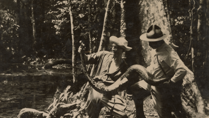 Pola Brückner, auch Pola Bauer-Adamara genannt, führte 1929/30 mit ihrem Ehemann August Brückner und den Brüdern Franz und Edgar Eichhorn eine Expedition ins Amazonasgebiet durch. Nachdem ihr Mann an Tropenfieber verstarb, übernahm Pola Brückner die Expeditionsleitung und vollendete den Film gemeinsam mit Kameramann Emilio Kaufmann. Die grüne Hölle kam 1931 in die Kinos. (gw)